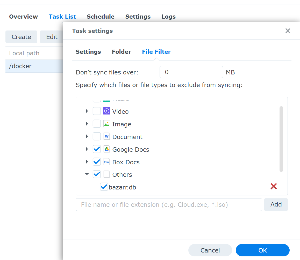 For a very long time and for previously unknown reasons, we have had a number of users running into database issues when running Bazarr on Synology. These are usually SQLite database locked errors or even worse. A Bazarr Discord user using the handle gr8Alex may have finally uncovered the issue (around early October, 2025). This user has minimized these errors by preventing the Synology cloud backup system from accessing the Bazarr database, found at db/bazarr.db within your installation of Bazarr. Here are the instructions on one way to replicate those efforts (you may have opinions on other/better ways to do so for your installation):